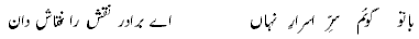 Translation: “ One is free in one’s actions / deeds but enjoys not an infinite sovereignty”. Whatever Babuji (R.A) said pointed in the same direction that man is free and yet the Divine Will is greater. Mian Muhammad Bukhsh, the epic writer of Saif-ul-Muluk, in his works stated as: |